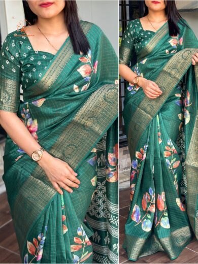 Revamp Your Wardrobe with Our Hand Printed Saree Featuring Zari Weaving